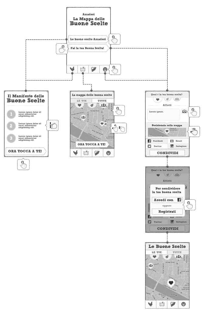 Progettazione di un’app mobile per Amadori come parte di un progetto competitivo, con l’obiettivo di incoraggiare gli utenti a registrare e condividere buone azioni quotidiane.