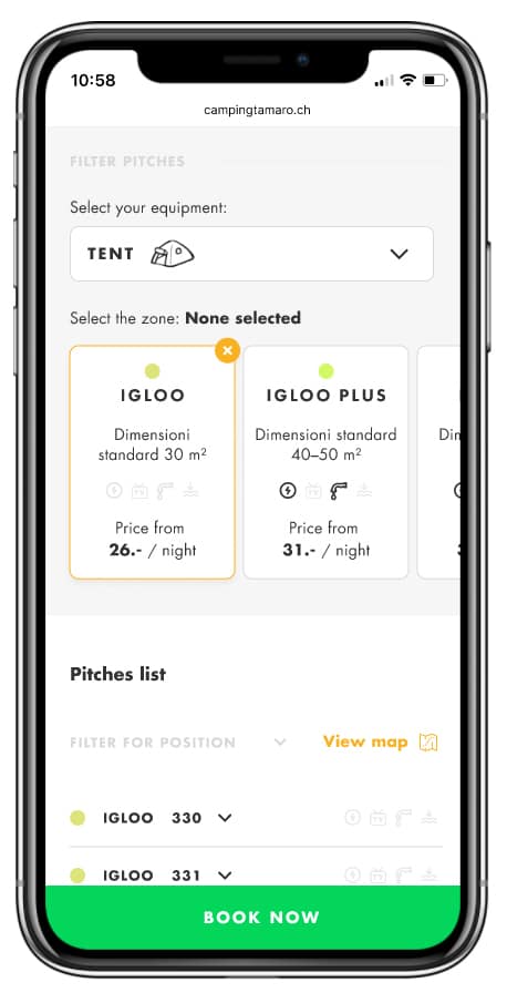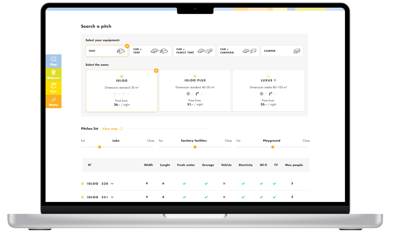 - Il sistema di filtri e ricerca è stato progettato per guidare l’utente in modo chiaro nella scelta della piazzola più adatta.