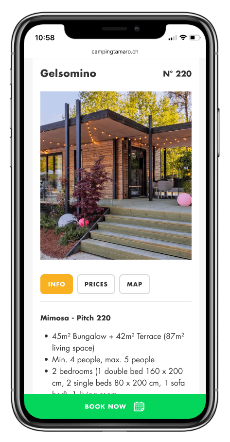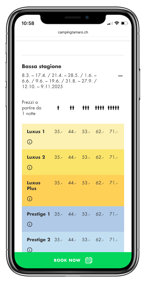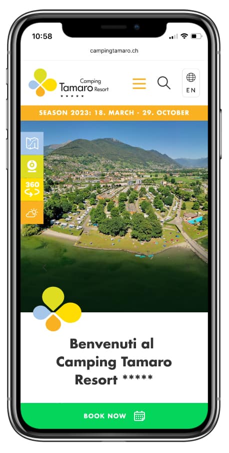 Camping Tamaro è una struttura ricettiva che accoglie campeggiatori con diverse esigenze e mezzi (tenda, camper, roulotte). L’obbiettivo del progetto era rinnovare il sito web, migliorando la user experience e facilitando la ricerca e la prenotazione delle piazzole, con una particolare attenzione alla fruibilità da mobile.