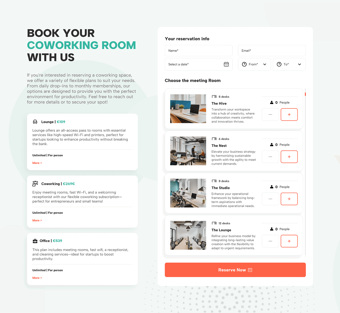 Mi sono occupata della proposta per il sito web di uno spazio di coworking, progettando sia l’esperienza utente (UX) che l’interfaccia utente (UI) per offrire un’esperienza intuitiva e coinvolgente.